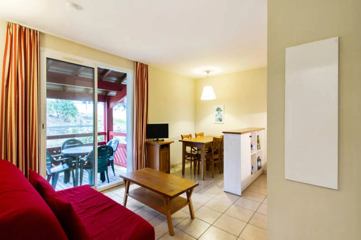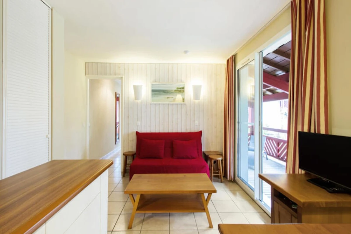 Cette charmante maison de vacances comprend un salon confortable avec un canapé-lit, idéal pour les personnes supplémentaires, et une chambre meublée de deux lits simples confortables. La propriété accepte les animaux domestiques, vous permettant d'emmener vos compagnons à quatre pattes avec vous pour le séjour. Un balcon privé offre un espace de détente pour profiter de la vue environnante, tandis que l'appartement comprend également des équipements pratiques comme une télévision, un accès Internet et une salle de bains bien équipée avec une combinaison baignoire-douche.