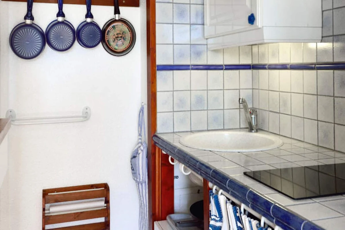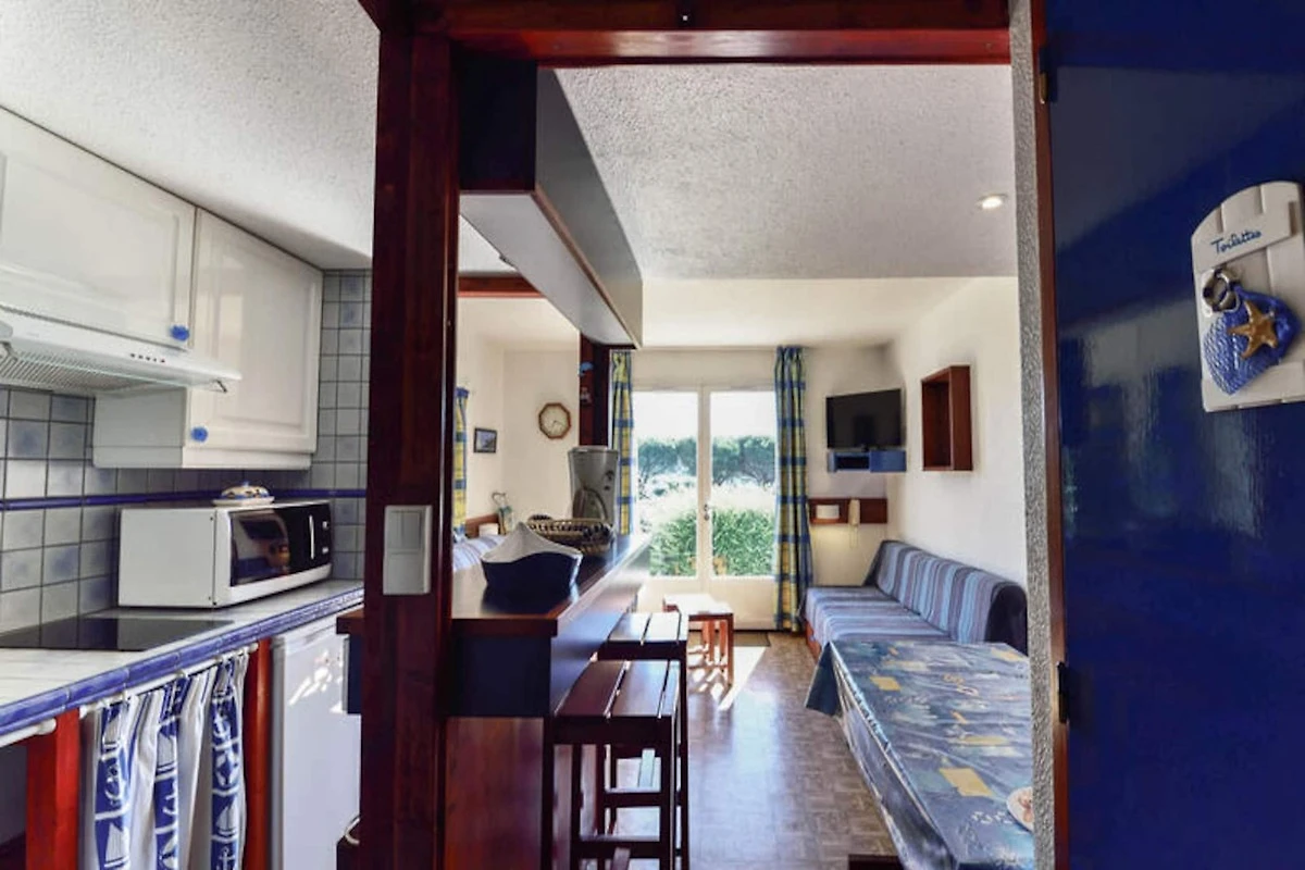 L'appartement dispose d'un coin cuisine ouvert sur le séjour, d'une salle de bain avec toilettes et d'une terrasse aménagée avec table et chaises. Des équipements supplémentaires comme le wifi, la location de kits bébé, le linge de lit, les serviettes et le ménage de fin de séjour sont tous disponibles moyennant des frais supplémentaires. Le stationnement extérieur gratuit est soumis à disponibilité des places. La piscine sur place est ouverte jusqu'au 15 septembre.