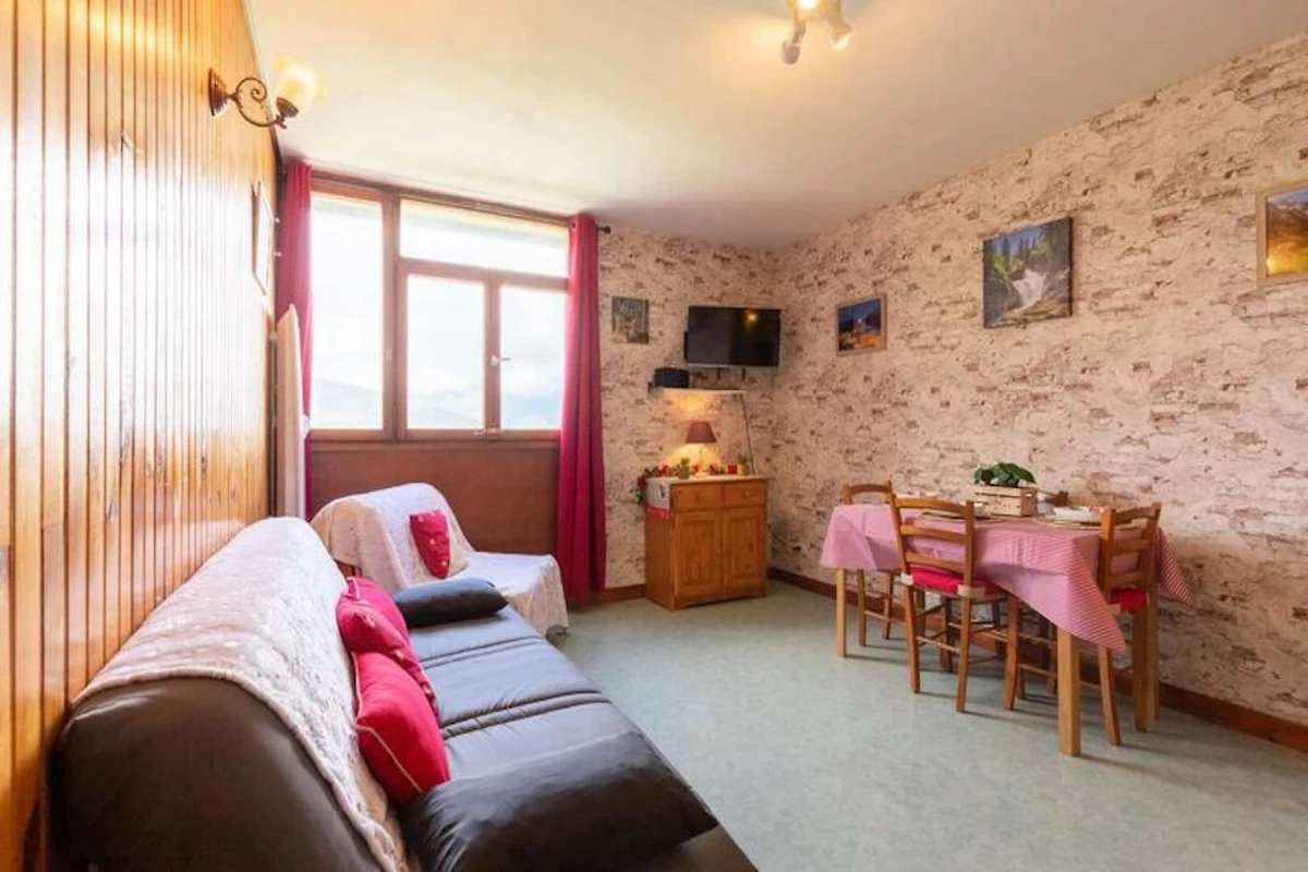 La propriété comprend une kitchenette pratique, équipée d'appareils de base pour préparer les repas pendant votre séjour. La salle de bain comprend une douche à l'italienne et des toilettes, conçues dans un souci de fonctionnalité moderne. Le chauffage est fourni dans tout le studio pour une expérience chaleureuse et confortable. Les clients peuvent également profiter de la possibilité de réserver des activités de montagne, des forfaits de remontées mécaniques et la location de matériel pour profiter au maximum de leur séjour.