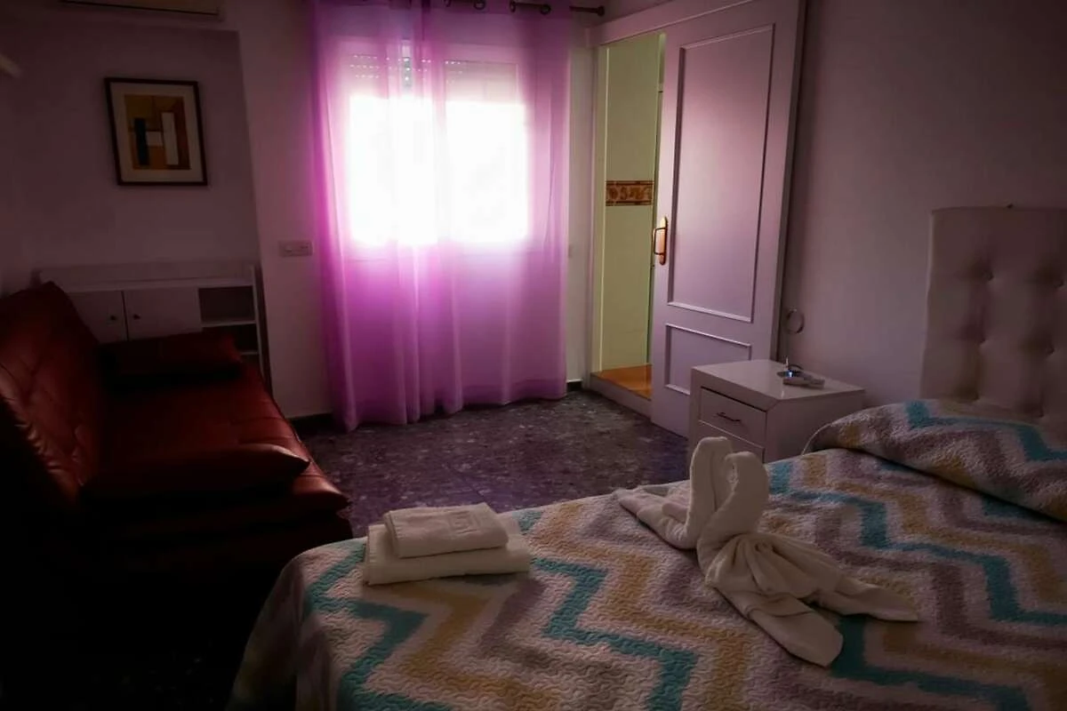Villa avec piscine privée, située à Séville, vous garantit une intimité et une tranquillité optimales pour des vacances inoubliables. Cette maison de vacances se compose d'un salon, d'une salle à manger, d'une cuisine très bien équipée, de 3 chambres (chacune avec un lit double et l'une d'elles avec un canapé-lit), ainsi que de 2 salles de bains, et peut accueillir jusqu'à 8 personnes. Elle dispose également d'un lave-linge, du Wi-Fi et d'une télévision.