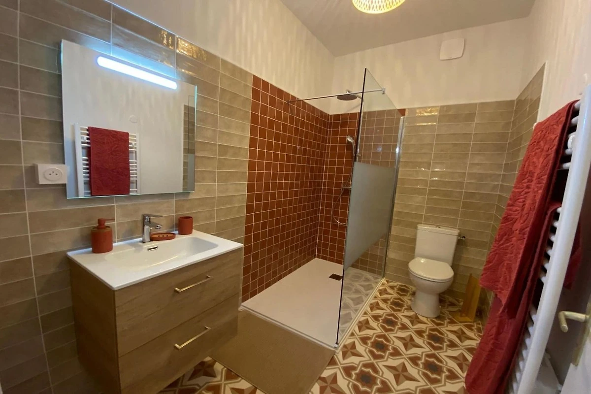 La maison s'étend sur deux niveaux, alliant espaces de vie chaleureux et commodités modernes. Le rez-de-chaussée comprend un salon spacieux avec de nombreux sièges, une télévision et une table à manger, une grande cuisine entièrement équipée avec machine à café, lave-vaisselle et réfrigérateur-congélateur, pour cuisiner facilement au quotidien, ainsi que des toilettes. Le premier étage abrite quatre chambres confortables et bien aménagées, meublées de lits doubles et simples, conçues pour garantir confort et intimité. Deux chambres disposent d'une salle de bain privative pour un séjour sans souci.