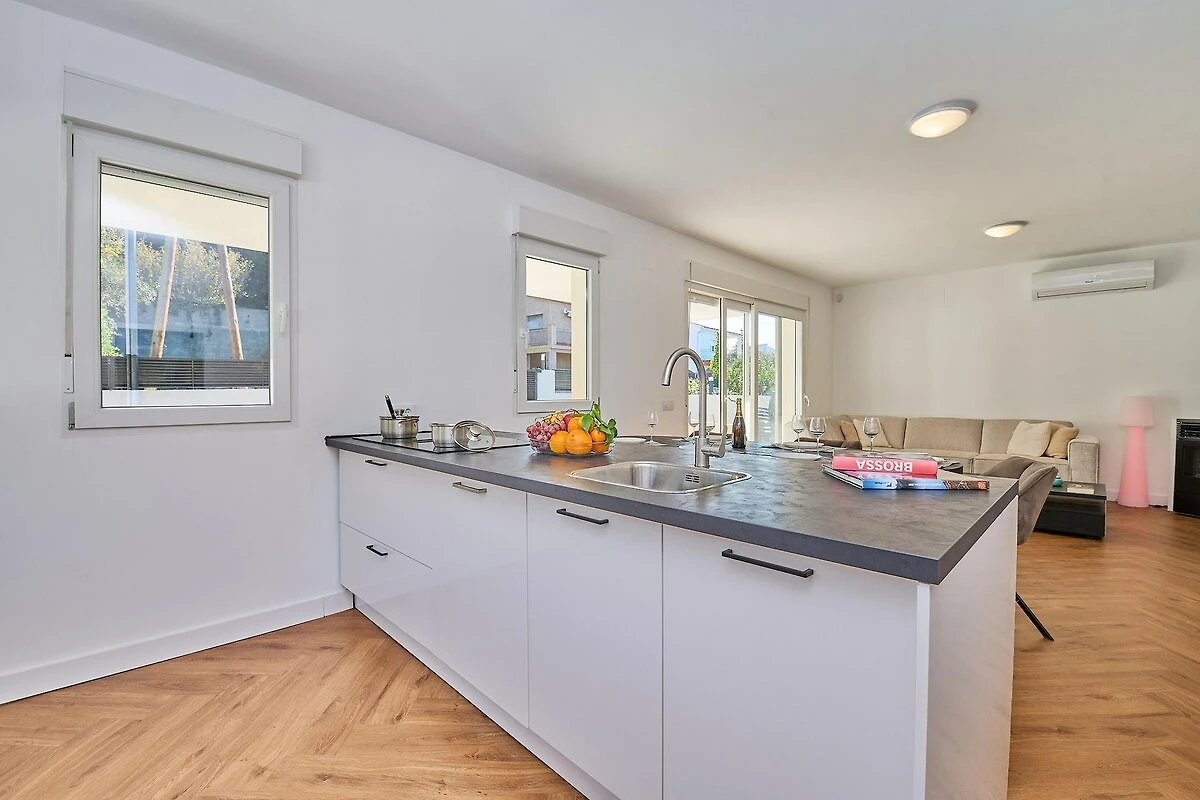 Découvrez le summum du confort moderne dans cette villa de 88 m² entièrement rénovée, idéale pour les familles en quête d'une retraite paisible sur la Costa Brava. Chaque recoin de cette maison a été modernisé avec une esthétique contemporaine élégante et des finitions haut de gamme. La maison dispose de trois chambres spacieuses, chacune équipée d'un lit double king-size (180 x 210 cm) pour un repos optimal. La salle de bain, digne d'un spa, comprend une double vasque et une grande douche à l'italienne, ainsi qu'un WC séparé pour plus de commodité.