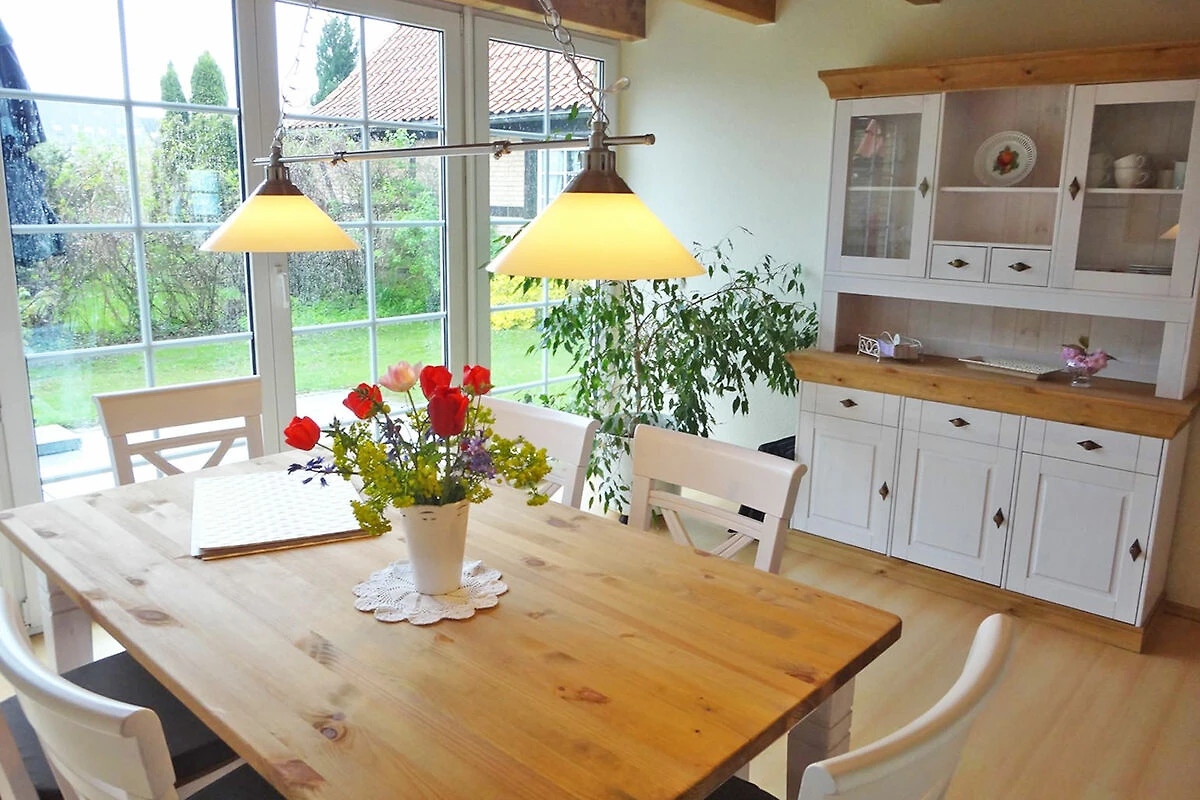 La maison de vacances aménagée avec goût et harmonie (90 m² de surface habitable, pour 2 à 4 personnes) convainc non seulement par son aménagement complet, mais aussi par son espace extérieur fermé et accueillant. Le jardin d'environ 150 m² avec une petite pelouse et une terrasse ensoleillée au sud invite à la détente avec des meubles de jardin, des chaises longues et un parasol, ainsi qu'un barbecue. En outre, une place de parking est disponible à 50 mètres et un abri de jardin permet de ranger les vélos ou les accessoires de sport en toute sécurité
