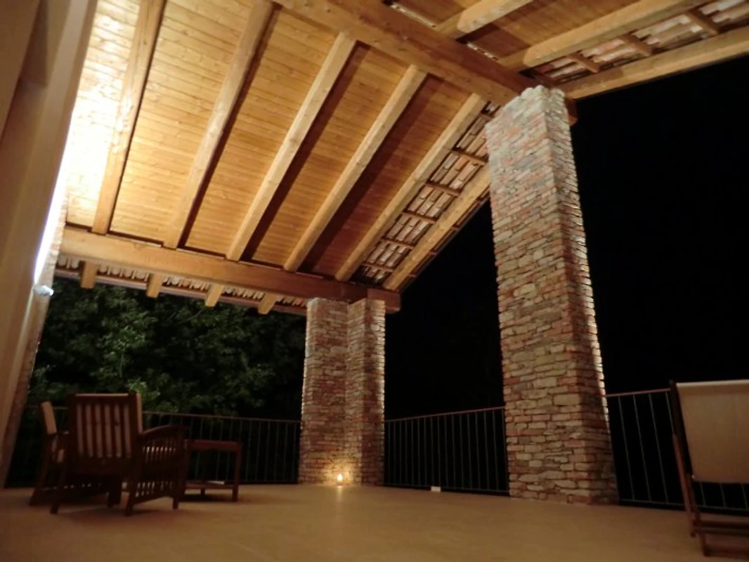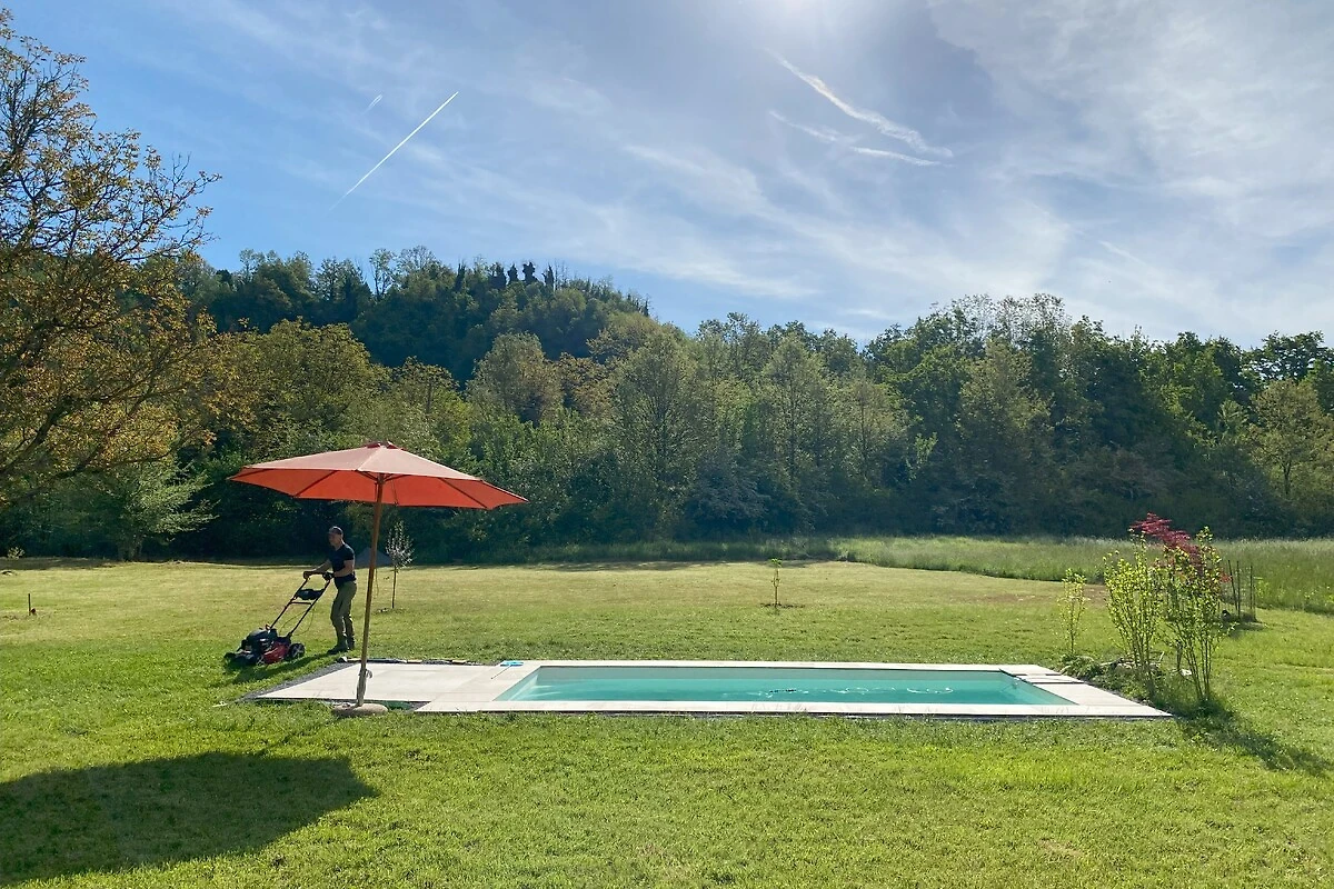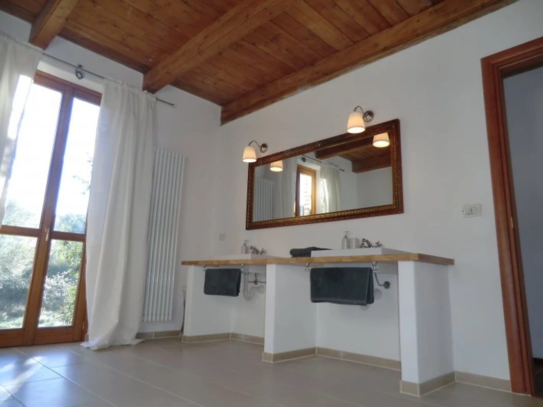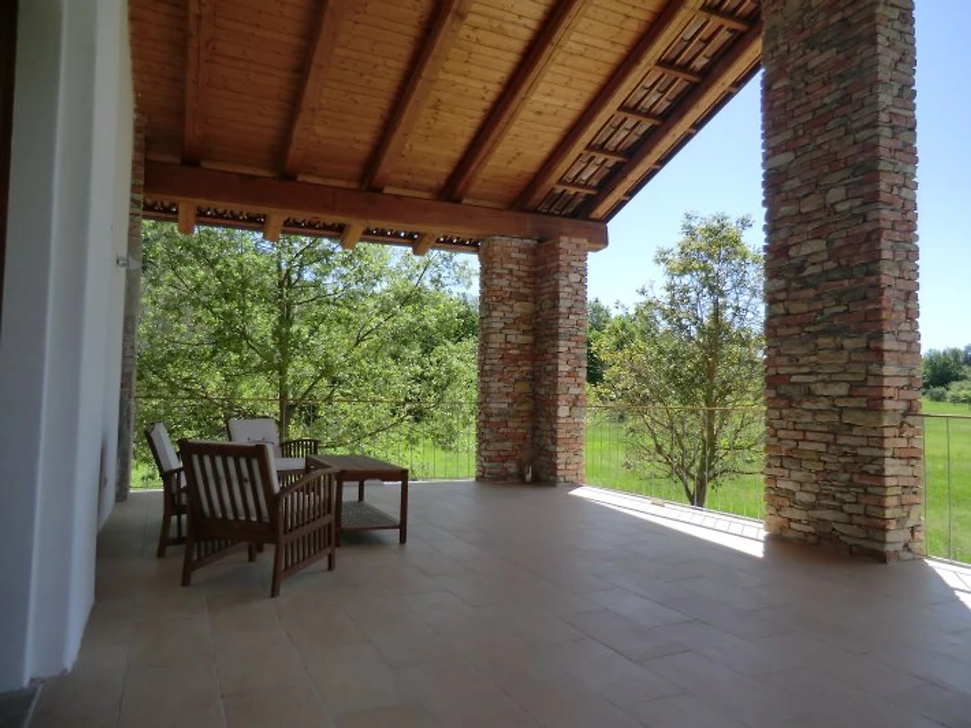 Surface habitable 180 m², 2 terrasses (en bas teck, en haut carrelage, chacune 40 m²) exposées sud avec chaises longues et salons, table à manger dehors et dedans, barbecue et foyer, 2+1 chambres 200 x180 cm, matelas à ressorts, parquet merbau, cuisine équipée allemande avec accessoires WMF+Silit, piscine d'eau douce de 20 m², vue sur les Alpes maritimes. Boccia, set de badminton, pêche dans le Tanaro, télescope d'observation des étoiles. Détente. Wi-Fi, DVD, chaîne stéréo. Pas de règlements.